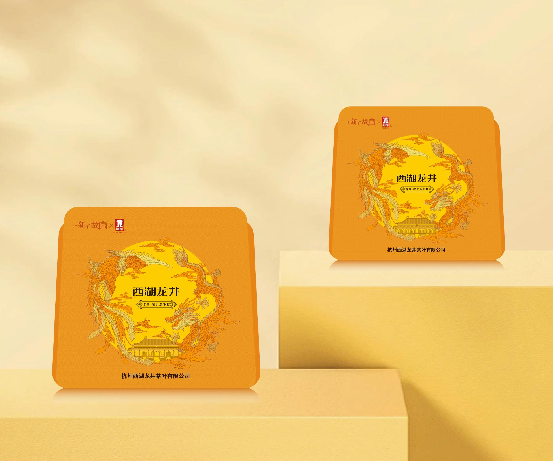 深入挖掘西湖龍井與故宮文化的內(nèi)涵,提取二者核心元素。在色彩選擇上,采用故宮經(jīng)典的明黃色、朱紅色等彰顯皇家氣派,同時搭配西湖龍井的翠綠色,營造出清新雅致又不失尊貴的視覺感受;紋樣設(shè)計融入故宮龍紋、祥云等傳統(tǒng)圖案,并結(jié)合西湖山水、龍井茶園等地域元素,將兩種文化巧妙融合,打造出兼具文化底蘊與地域特色的包裝視覺形象。